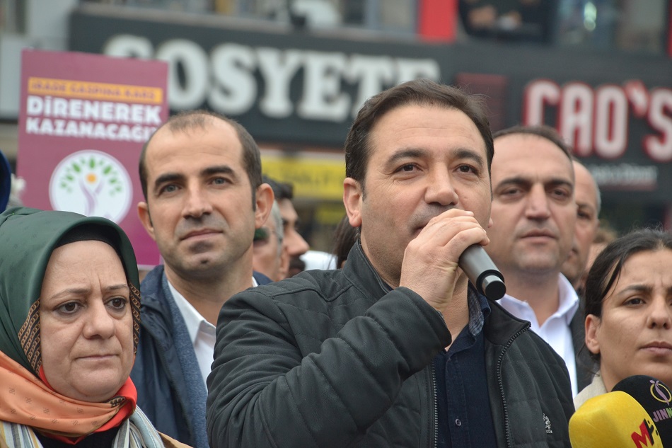 DEM Parti Siirt İl Eş Başkanı Eşref Tekin, konuşmasında, “Bir haftadır direnişte olan Batman halkının iradesine sahip çıktığını saygıyla belirtiyorum. Kürt halkının iradesini yok sayanlar uykularından uyansınlar, bu halk asla boyun eğmeyecek. Batman halkı, 2014’te 90 bin, 2019’da 120 bin, 2024’te ise 125 bin kişiyle iradesine sahip çıktı. Bu halkın iradesi kayyumdan büyüktür. Birliğimizi koruma günü” dedi.