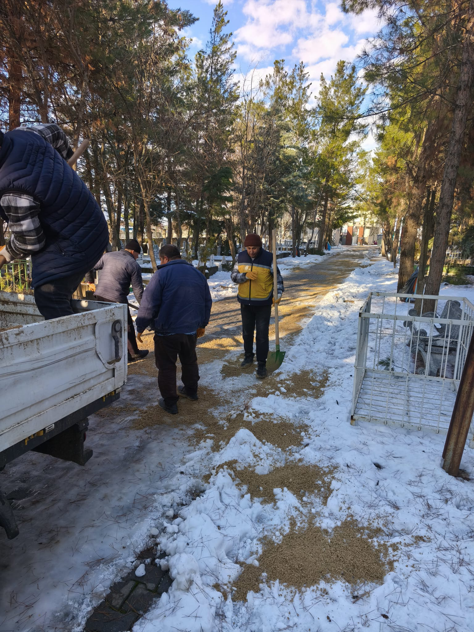 Müdürlük personeli, don olaylarına karşı gerekli önlemleri alarak bakım ve onarım çalışmalarını aralıksız devam ettiriyor. Özellikle mezarlık içindeki yol ve kaldırımlarda kayma riskine karşı kumlama ve tuzlama çalışmaları gerçekleştiriliyor.