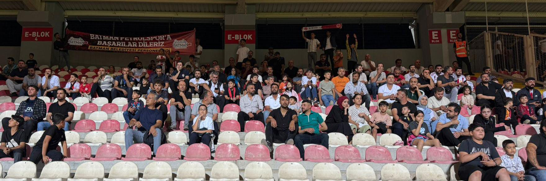 Maç öncesinde tribünlerde yerlerini alan belediye personelleri, “Batman Petrolspor’a Başarılar Dileriz” yazılı pankart açarak takıma olan desteklerini gösterdi. Coşkulu tezahüratlarla takımlarını yalnız bırakmayan personeller, atmosferin oluşmasına da katkı sundu.