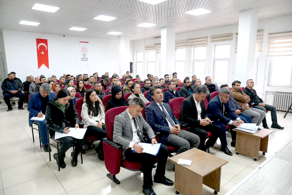 İlçe Milli Eğitim Müdürlüğü Konferans Salonu’nda yapılan toplantıya, okul müdürleri ve emniyet yetkilileri katıldı.