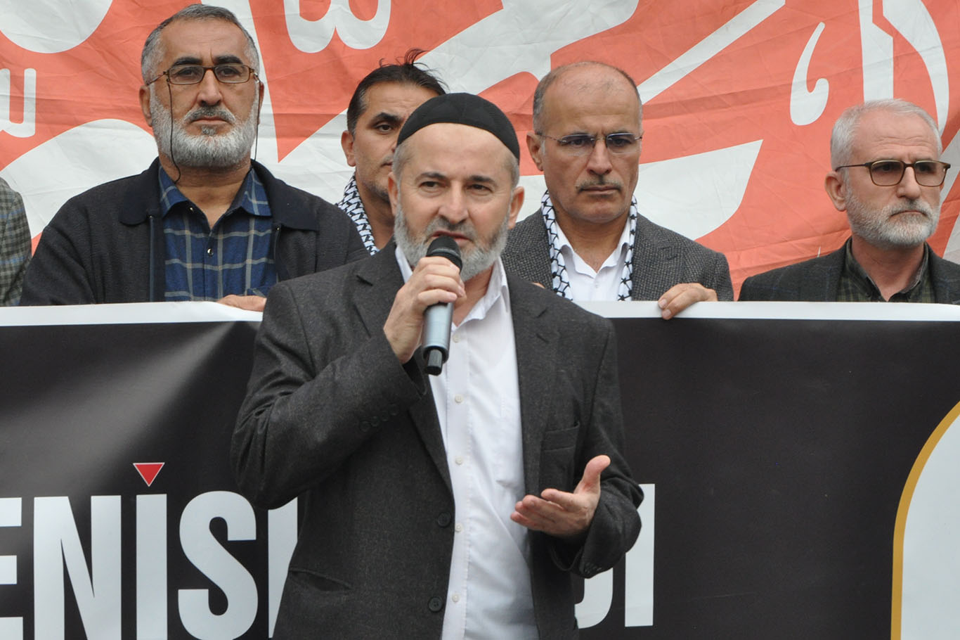 Basın açıklaması, Kur’an-ı Kerim tilavetiyle başladı. İTTİHADUL ULEMA üyesi Molla Mehmet Ali Altun, yaptığı konuşmada Kudüs davasının tüm Müslümanların ortak meselesi olduğunu vurguladı. Altun, “Kudüs mücadelesi Müslümanların ortak mücadelesidir. Kudüs’ü özgürleştirmek, Müslümanların birinci vazifesidir. Filistin’de büyük bedeller ödeyen kardeşlerimizle birlikte olduğumuzu haykırmak için buradayız.” dedi.