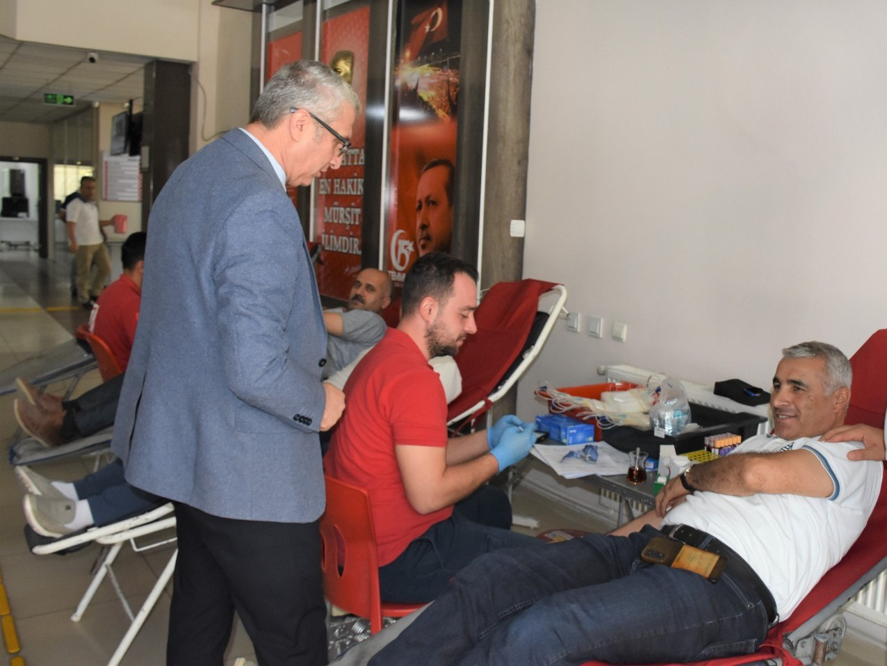 Müdürlüğün hizmet binasında kurulan kan bağış standında, gün boyu süren etkinlikte çok sayıda yönetici ve personel kan bağışında bulundu.