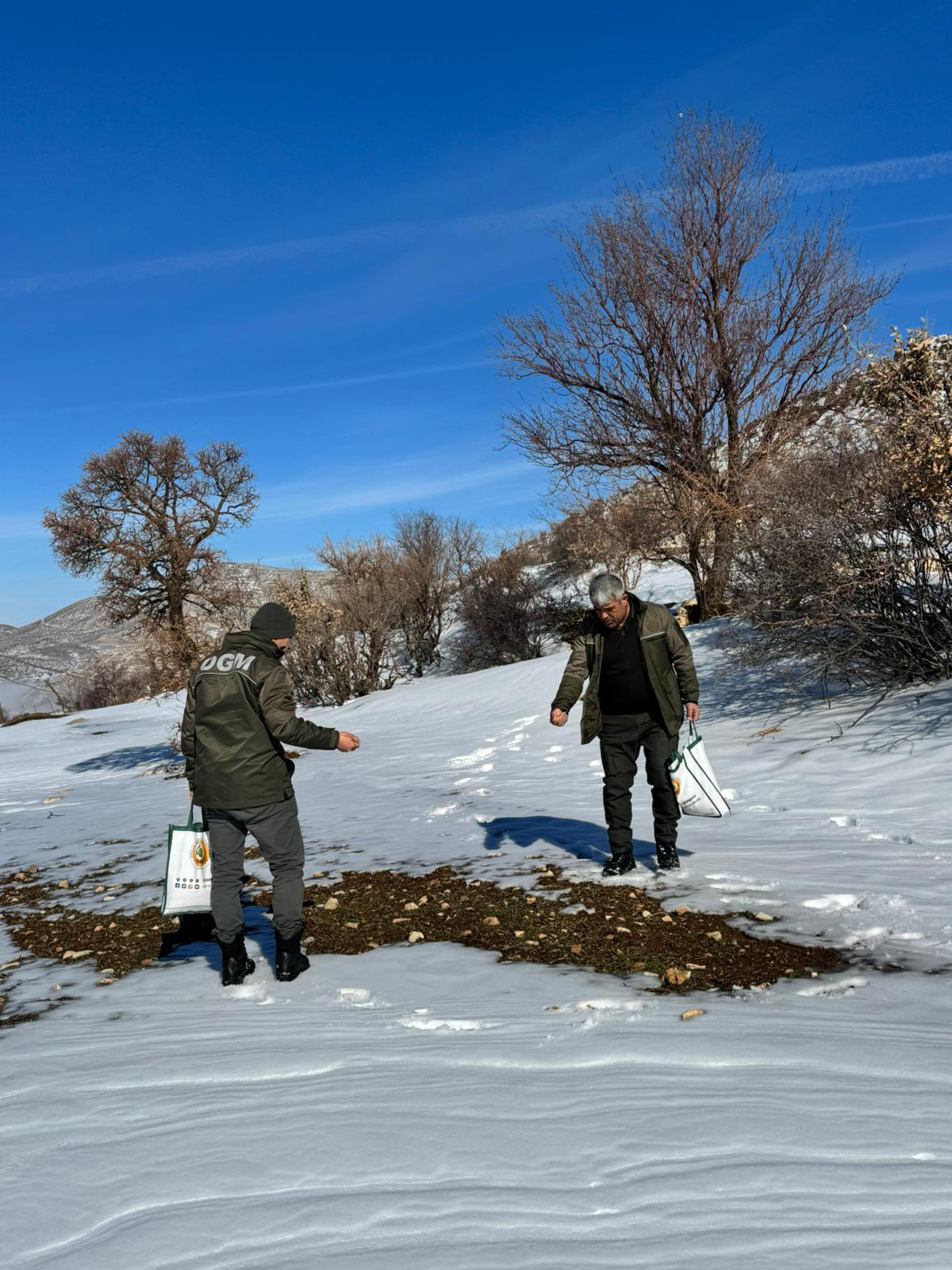 Ekipler, zorlu arazi şartlarına ve soğuk havaya rağmen yaban hayvanları ve kuşlar için yem bırakma çalışmalarını titizlikle yürüttü. Her avuç yem, bir canlının hayata tutunmasına katkı sağlamak amacıyla özenle seçilen noktalara bırakıldı. Bu yemler arasında buğday, yulaf ve çeşitli tohumlar yer aldı.