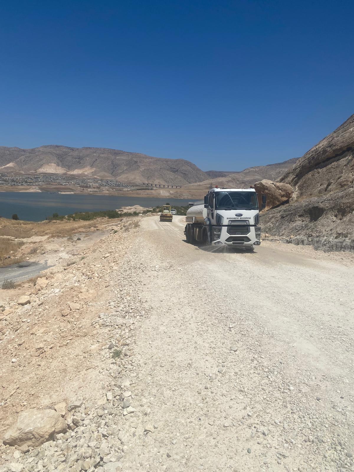 Hasankeyf’e bağlı Karaköy Uzundere ve Kale bölgesine ait yol, Özel İdare şantiyesi imkanlarıyla tesviye edildi.