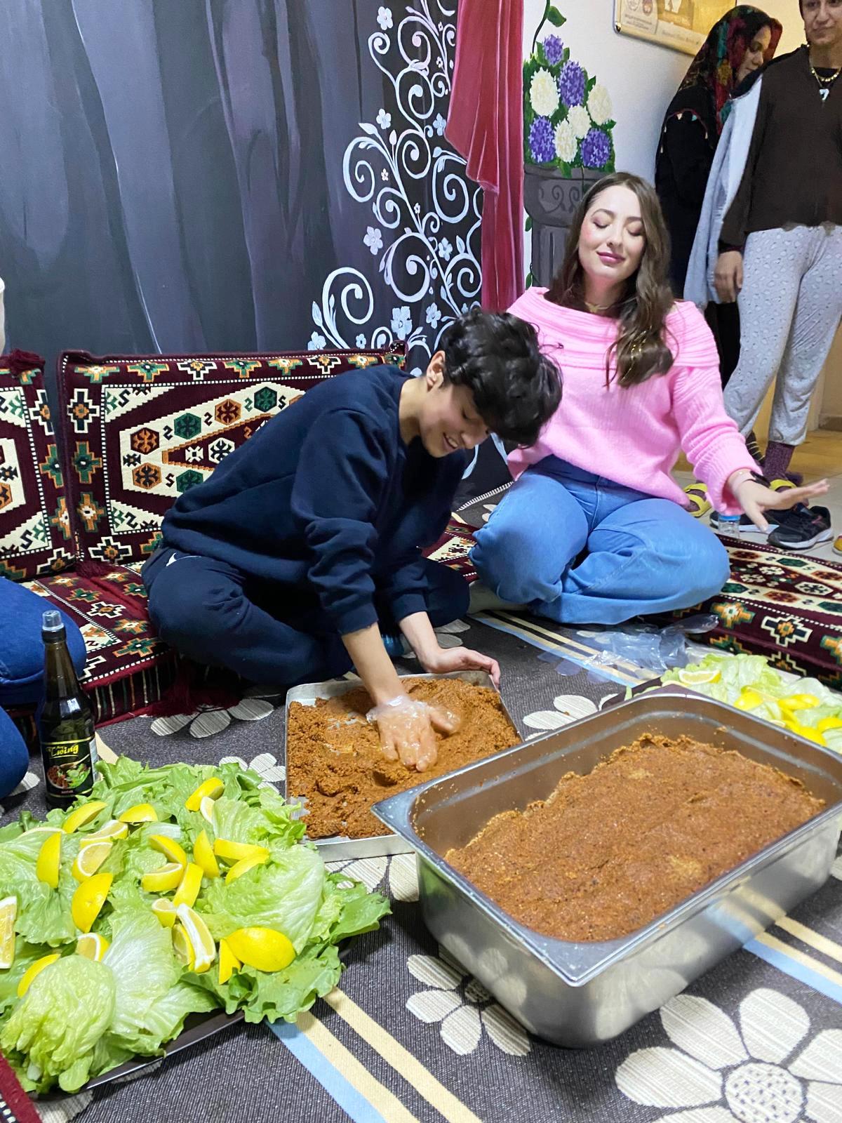 Batman Gençlik ve Spor İl Müdürlüğüne bağlı Batman Kız Yurdunda kalan öğrenciler, sınav haftası öncesi çiğköfte yoğurup birlikte gönüllerince eğlendi.