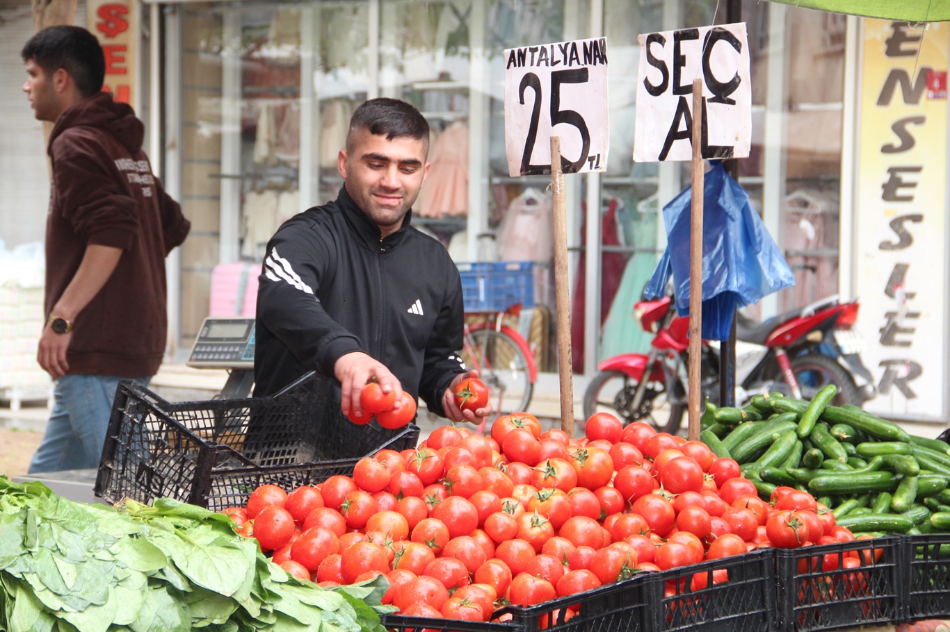 Sebze fiyatlarındaki düşüşün hem kendilerini hem de vatandaşları mutlu ettiğini belirten pazarcı esnafı Zeki Aslan, “Ramazan ayında biberin kilosu 70-80 lira civarındaydı, şimdi ise 40 liraya düştü. Domates ve salatalık ise bayramdan sonra 15 liraya kadar gerilemişti, ancak şu anda 22 liraya alıyoruz. Bayram öncesinde domates ve salatalık 60-70 liradan satılıyordu. Bahar aylarının gelmesiyle yerli ürünler piyasaya girdi ve bayram tatili sırasında ürün birikimi yaşandı. Bu da fiyatların düşmesine neden oldu. Fiyatların düşmesi çok iyi oldu, özellikle dar gelirli vatandaşlarımız daha rahat alışveriş yapabiliyor” dedi.